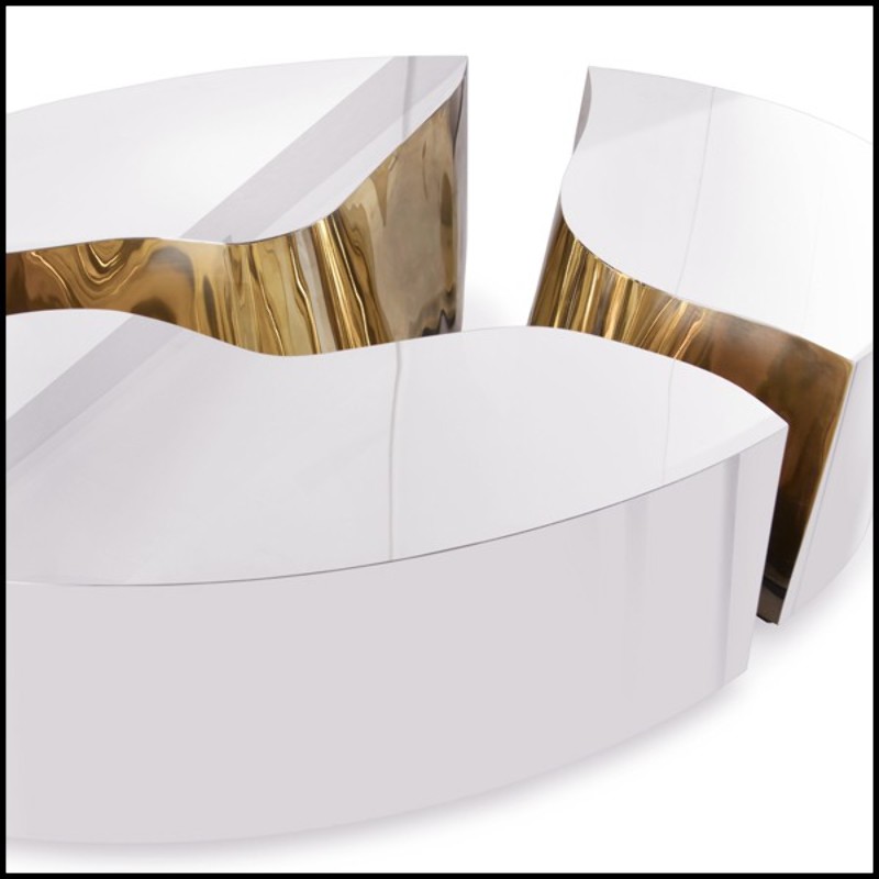 Table basse en acier inoxydable poli avec intérieur en laiton poli 145-Paradise Oval