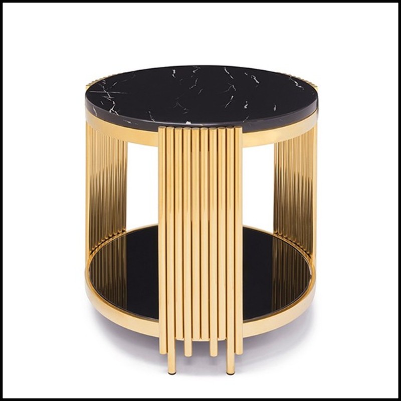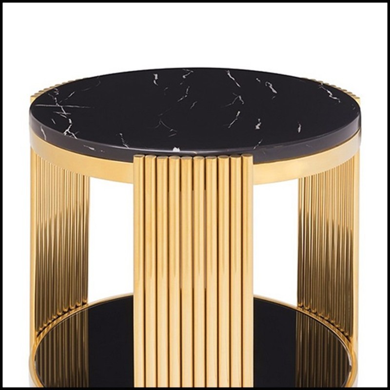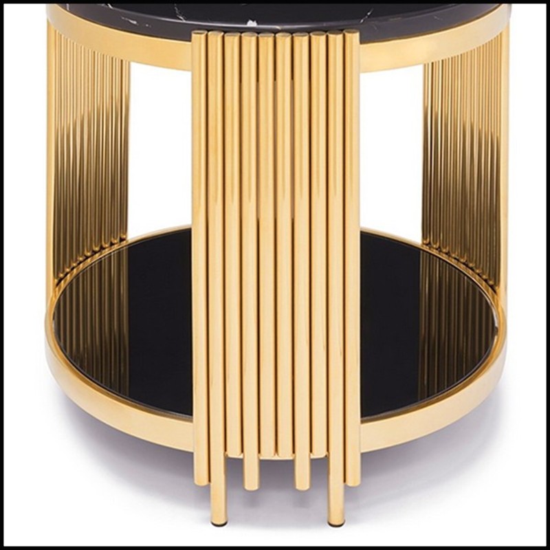 finition or, son plateau en marbre noir et son plateau inférieur en verre noir.