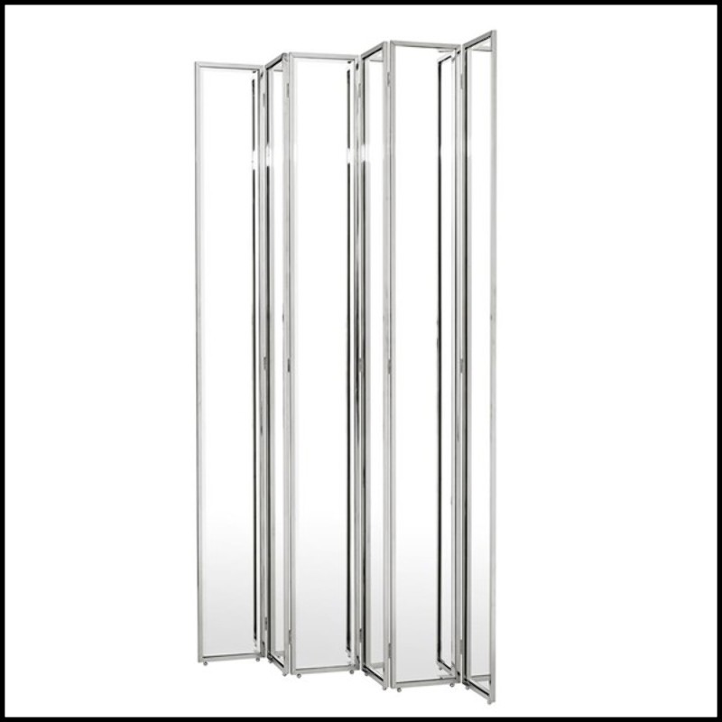 Paravents Miss finition nickel et avec miroirs biseautés.