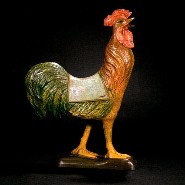 Coq en bois sculpté peint 01-106-COQUEREAU & MARECHAL