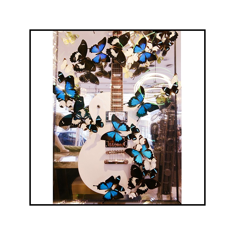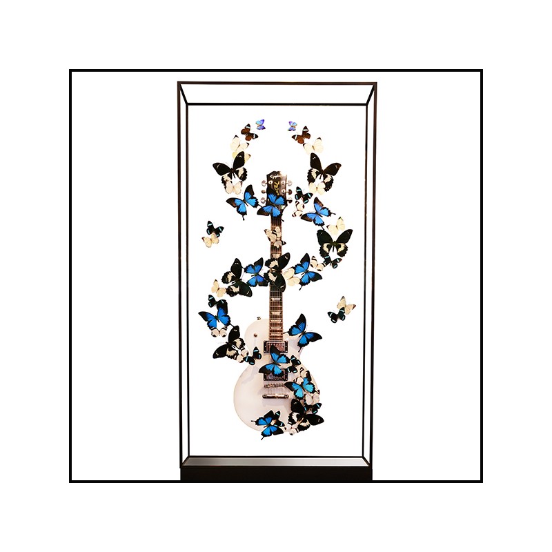 Ref : Guitare PC- Les Paul Papillons Blancs et Bleus