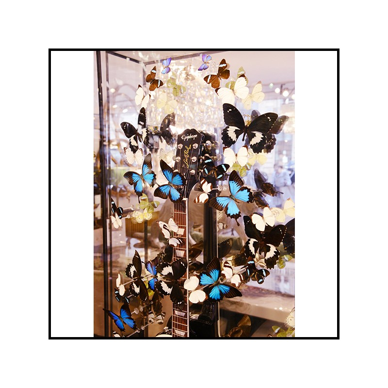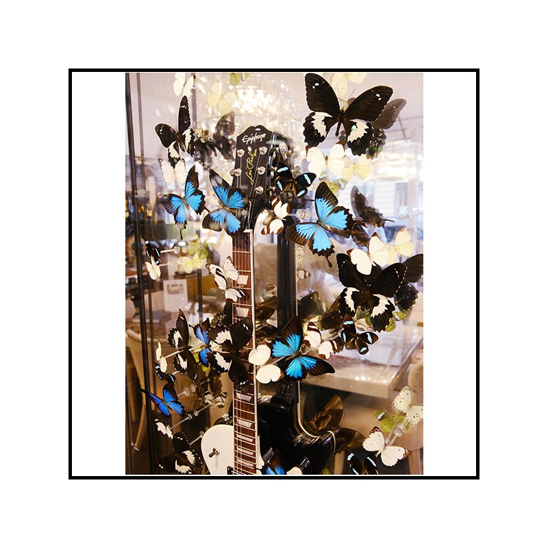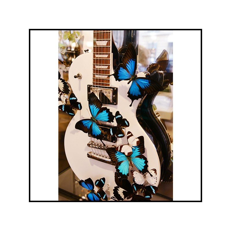 Guitare Les Paul White and Blue Butterflies présente une véritable guitare Epiphone Les Paul,