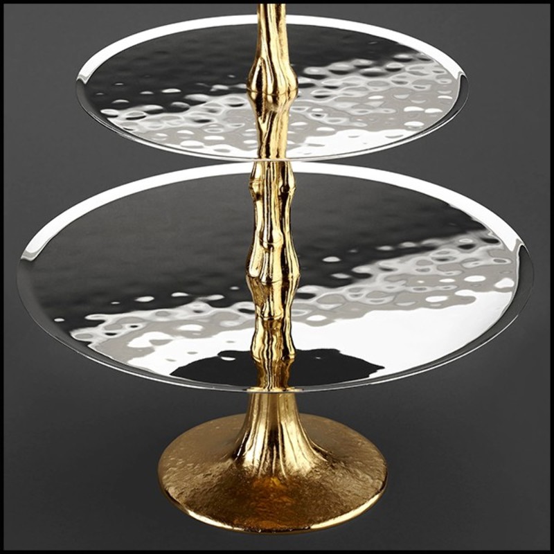 Centre de table plaqué nickel et plaqué or 24 karats avec 2 plateaux l'Objet-Spiral