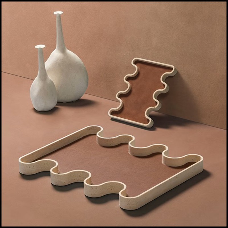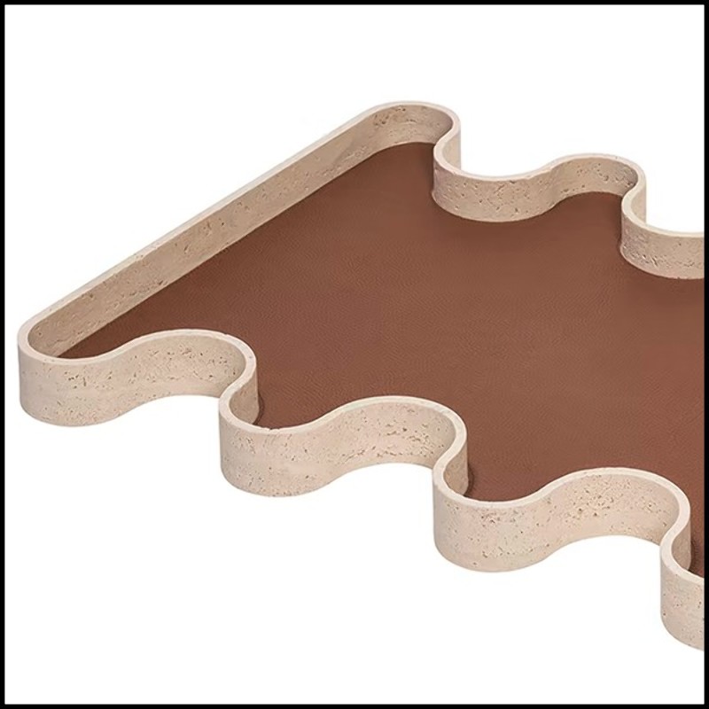 avec plateau mobile en cuir véritable de veau, finition marron.