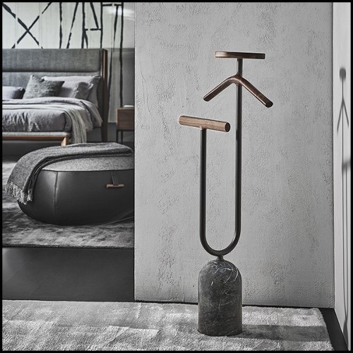Avec base en marbre gris foncé Carnico avec tige en métal noir mat.