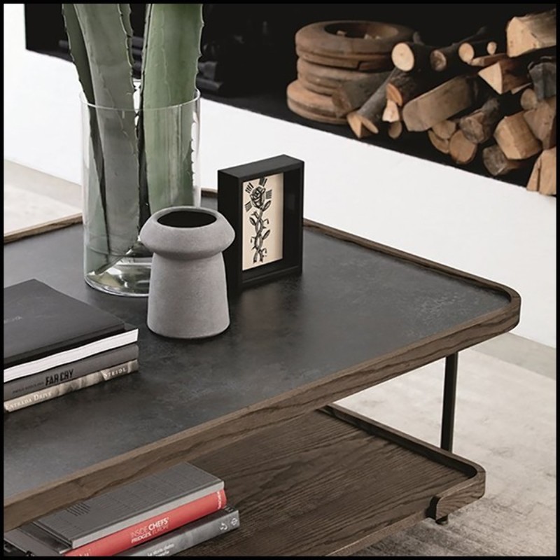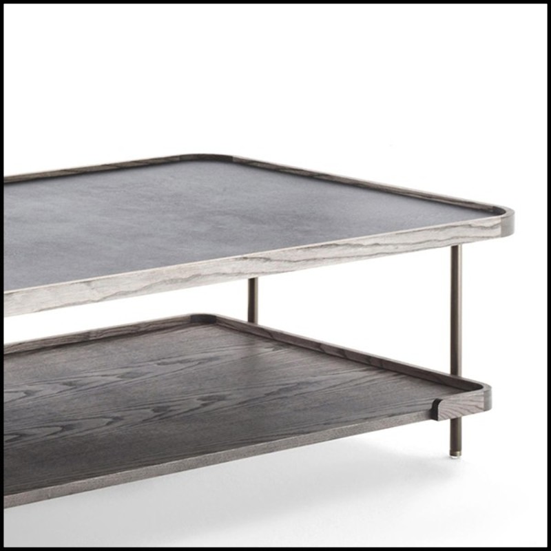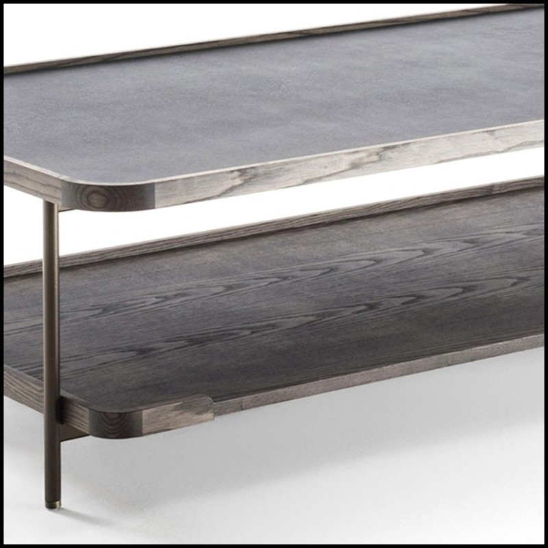 Plateau en bois de frêne massif et plateau supérieur en roche.