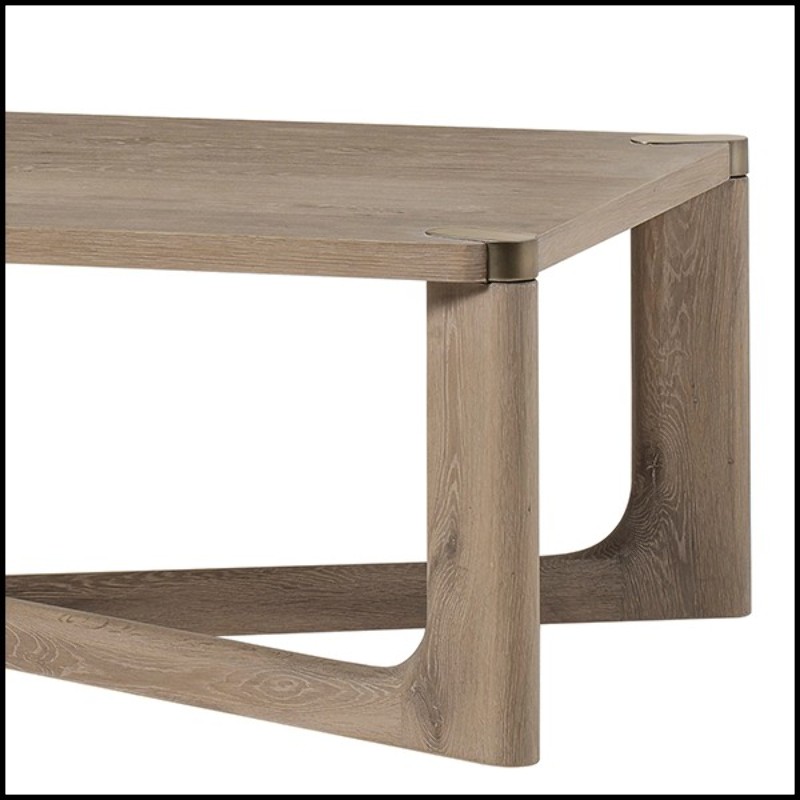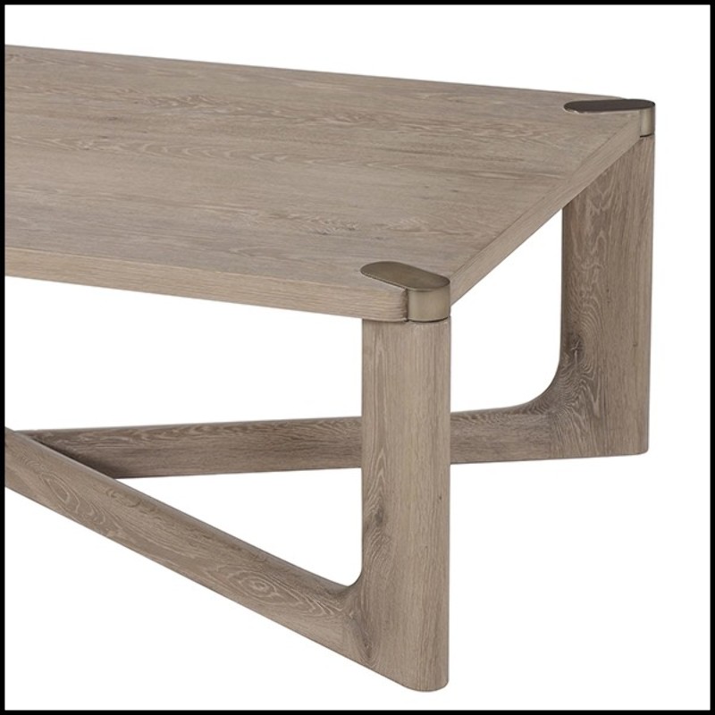 et avec des détails en laiton satiné à chaque coin du plateau.