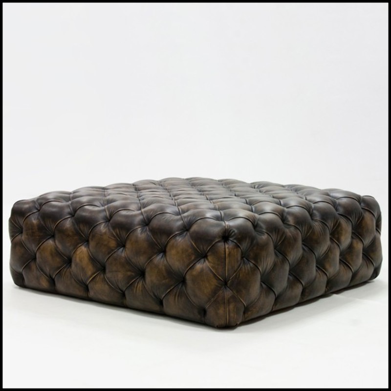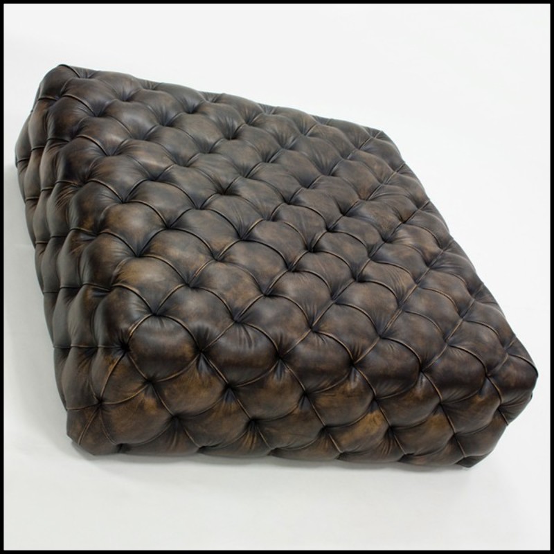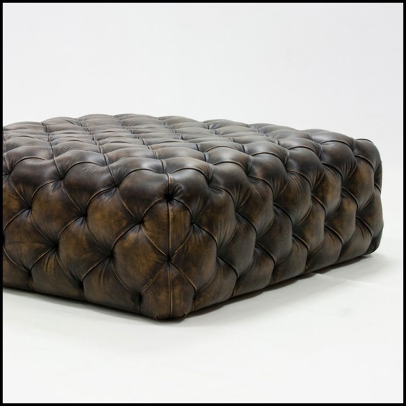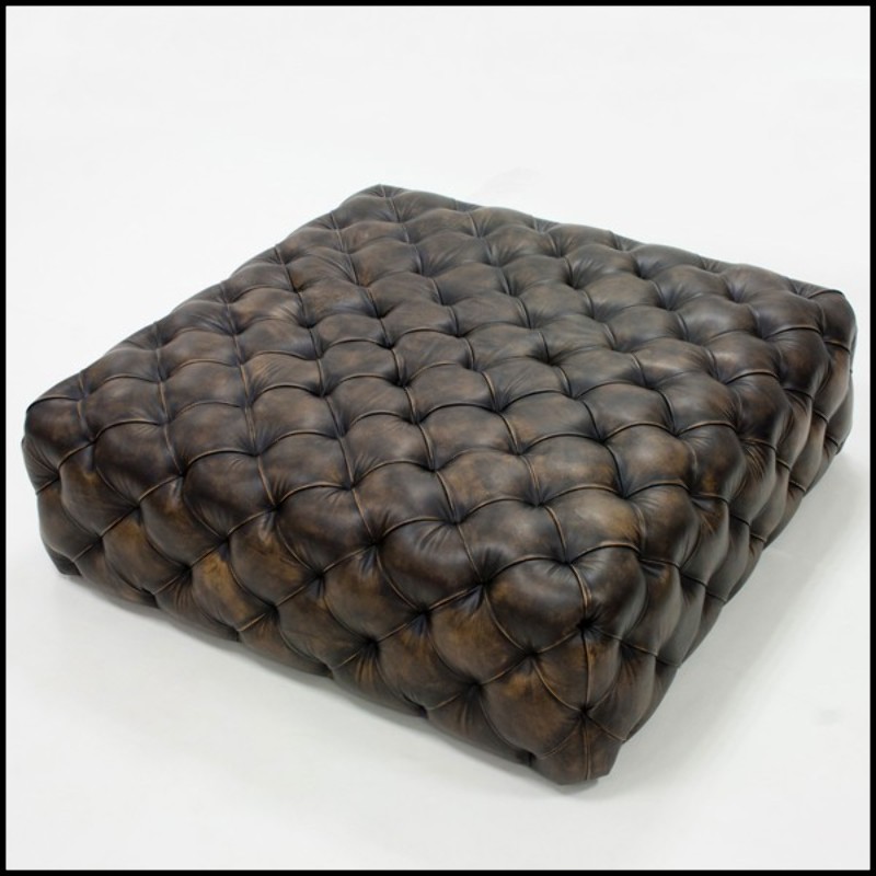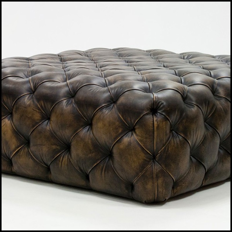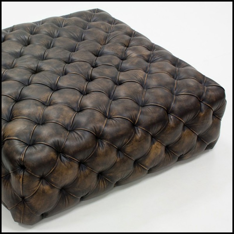 Pouf avec structure en bois massif recouvert de cuir brun naturel capitonné 176-Browny Leather