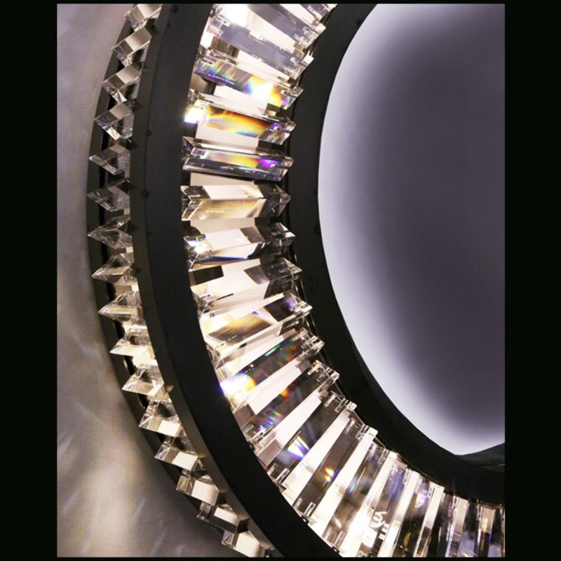 Miroir Art Deco, rond avec verre cristal étincelant taillé