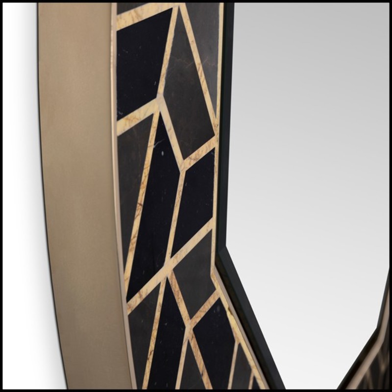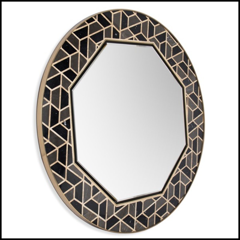 Miroir avec cadre hexagonal en bois massif noirci laqué avec structure en laiton poli et morceaux de marbre 169-Turtle