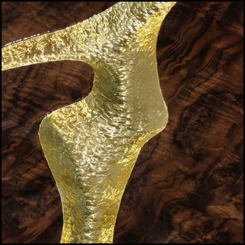 Table basse ronde en noyer et détails en laiton poli martelé 145-Excellence