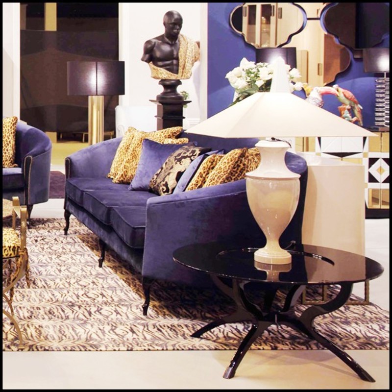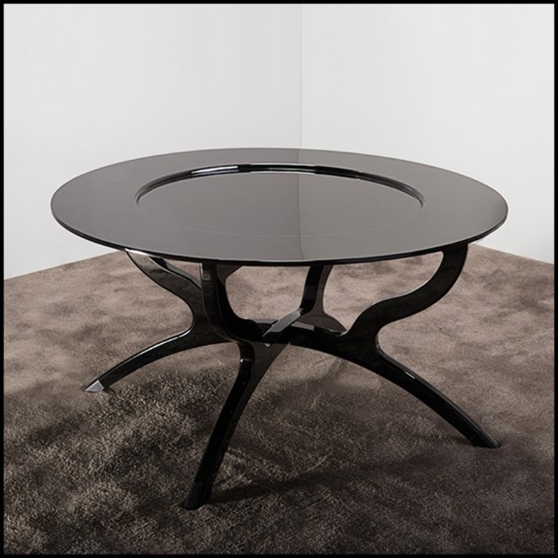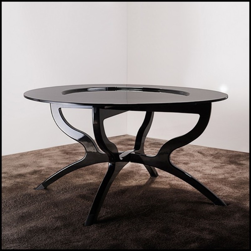 Table basse avec structure en bois massif sculpté à la main finition laquée Black 167-Black Lacquered