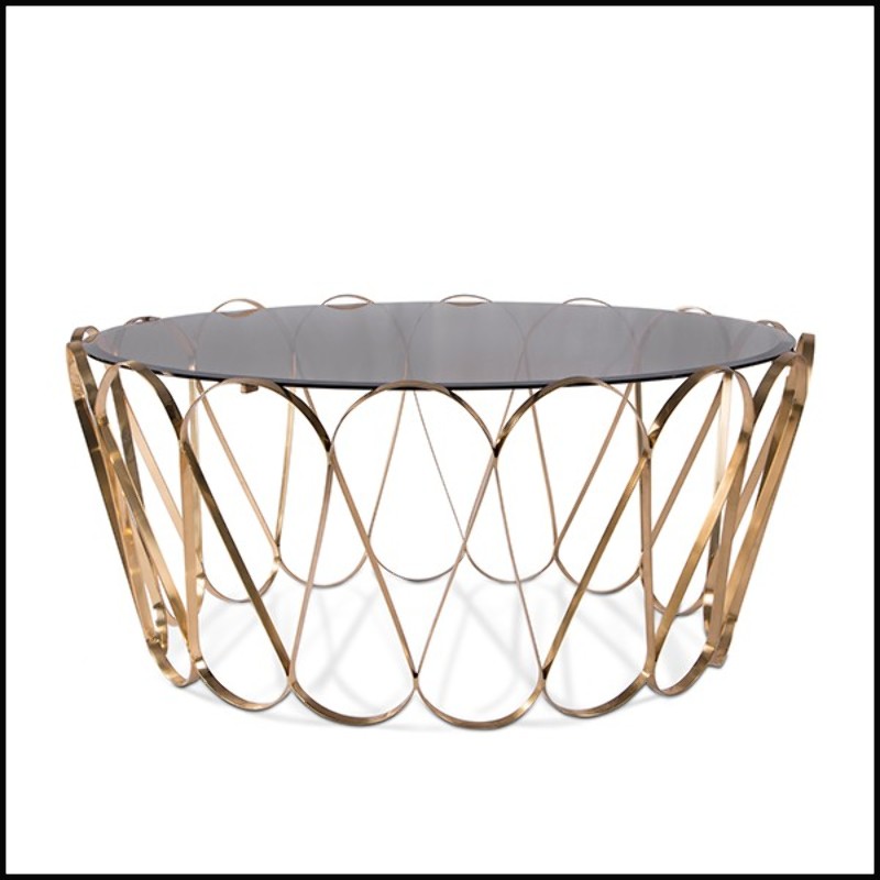 Table basse avec plateau en verre trempé fumé et base en laiton massif plaqué or 145-Waterflor Gold