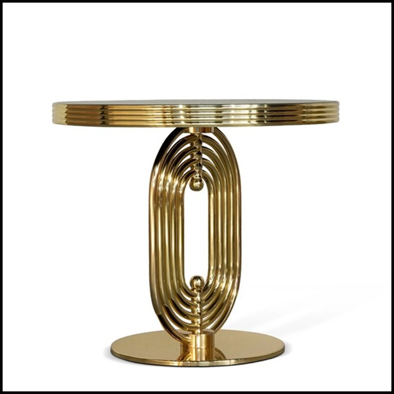 Table ronde Pema avec structure en laiton massif en finition polie,