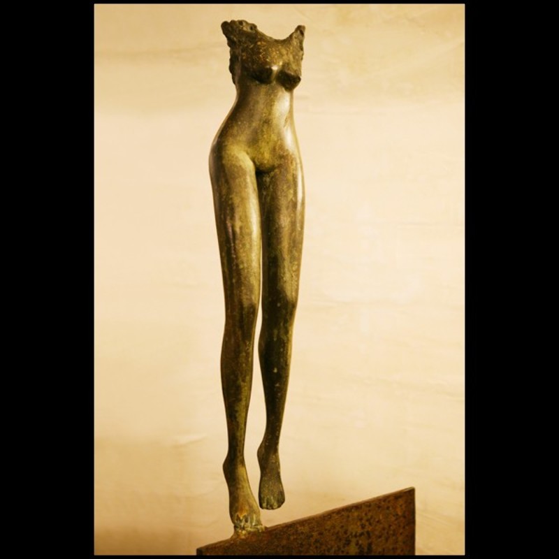 Sculpture en bronze massif sur base rectangulaire en tôle de cargo PC-Body Lady