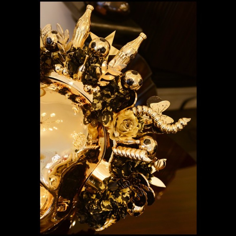 Crâne ornée de différents symboles de la jeunesse en Gold.