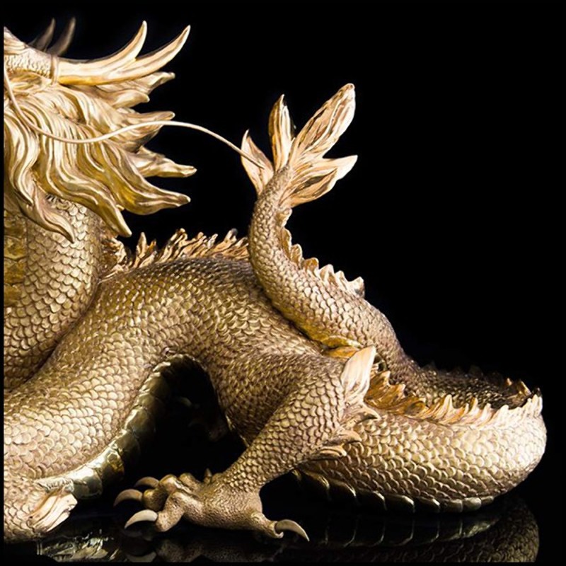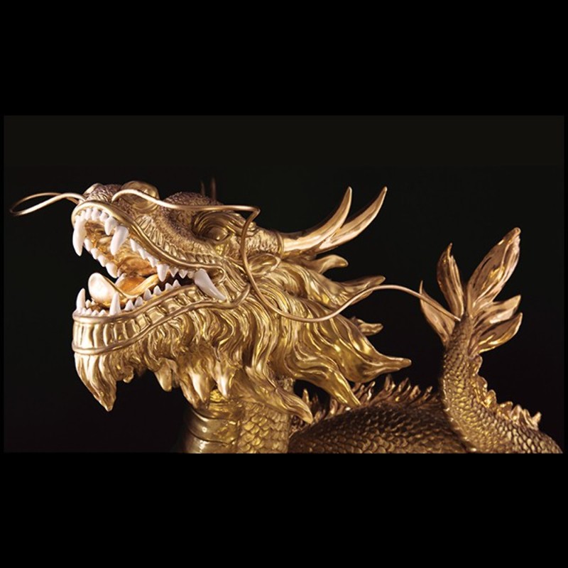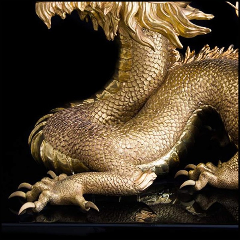 Sculpture dragon in porcelain and gold-plated 24k gold 196-Gold Dragon
