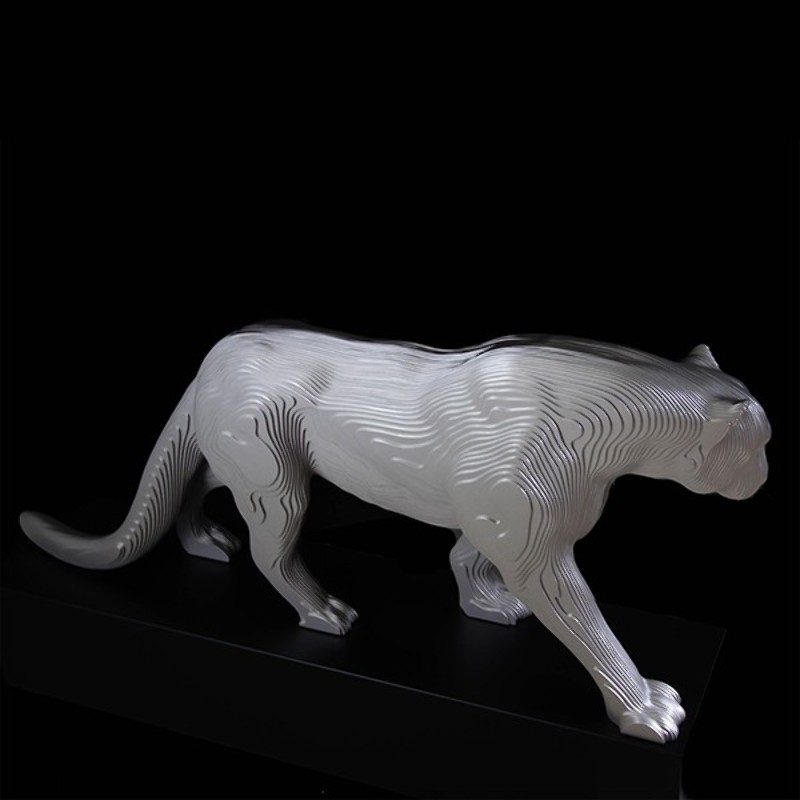 Sculpture Polished Panther composée de 154 couches d'aluminium.