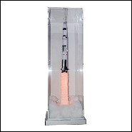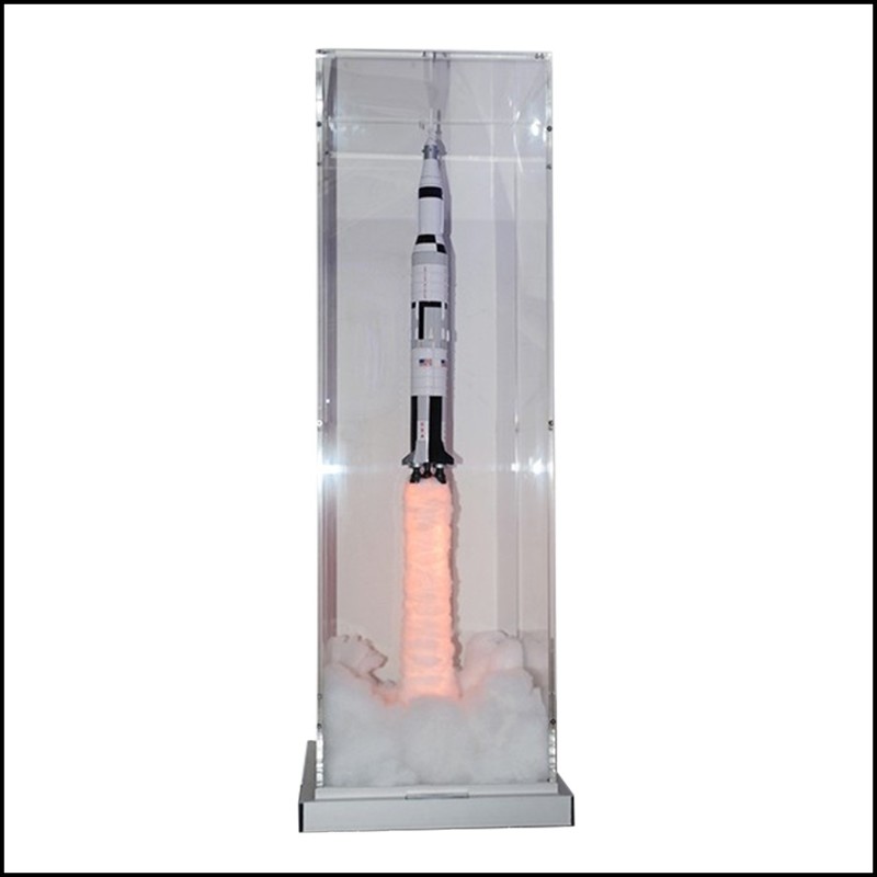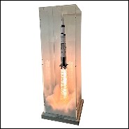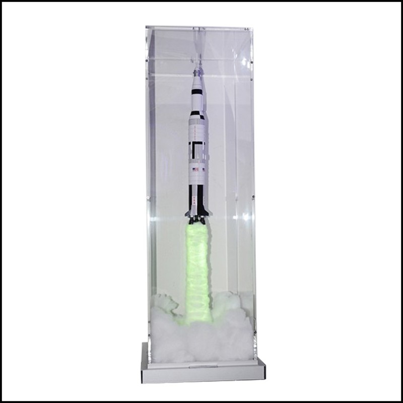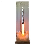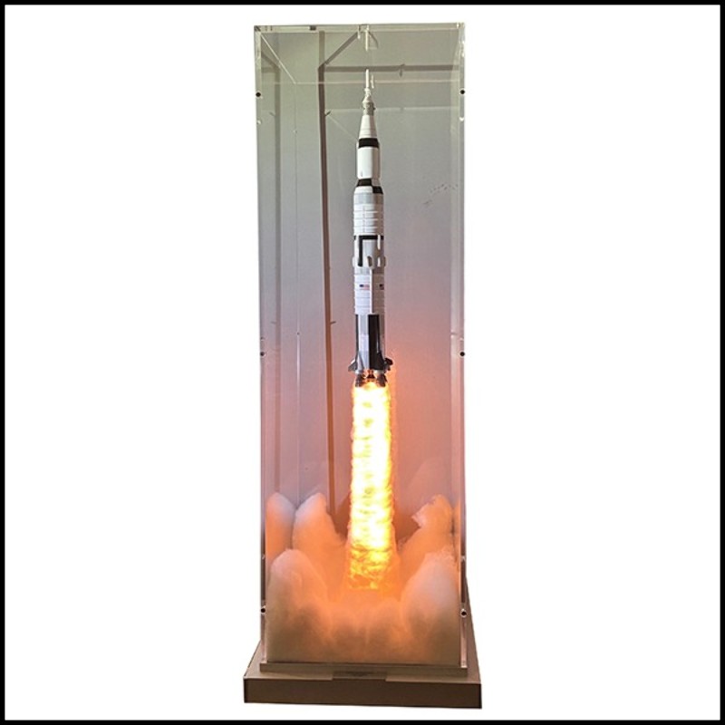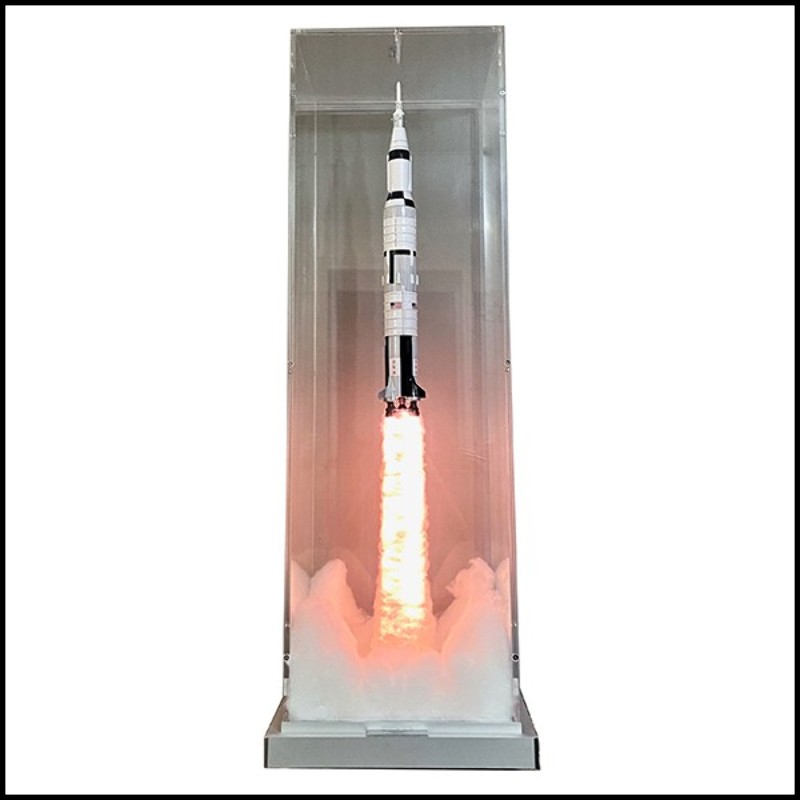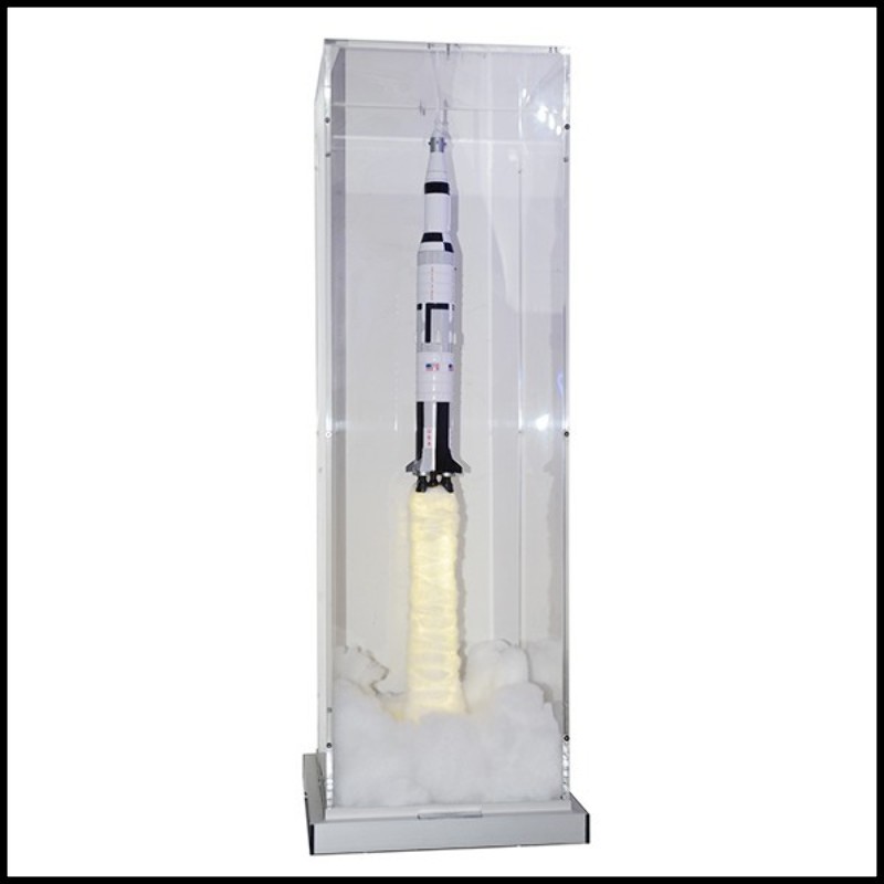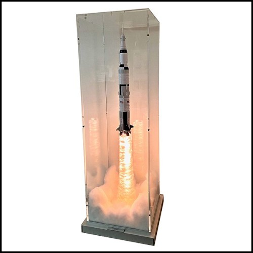 Pièce peinte à la main. Fusée sous boite en plexiglas ultra clair, avec de la fumée pour créer l'effet de décollage.