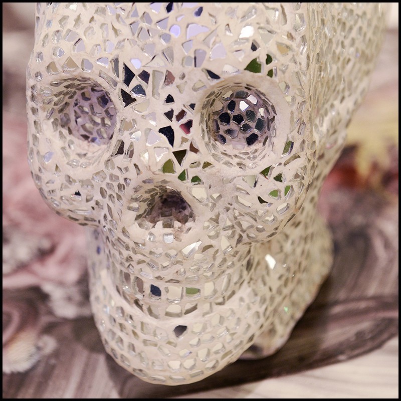 couvert de brisures de verre miroirs.