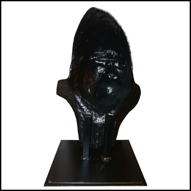 Sculpture Buste de Gorille en métal travaillé à la main sur socle PC-Gorille Métal