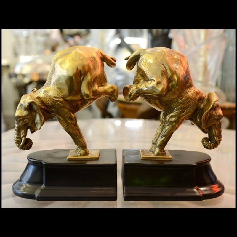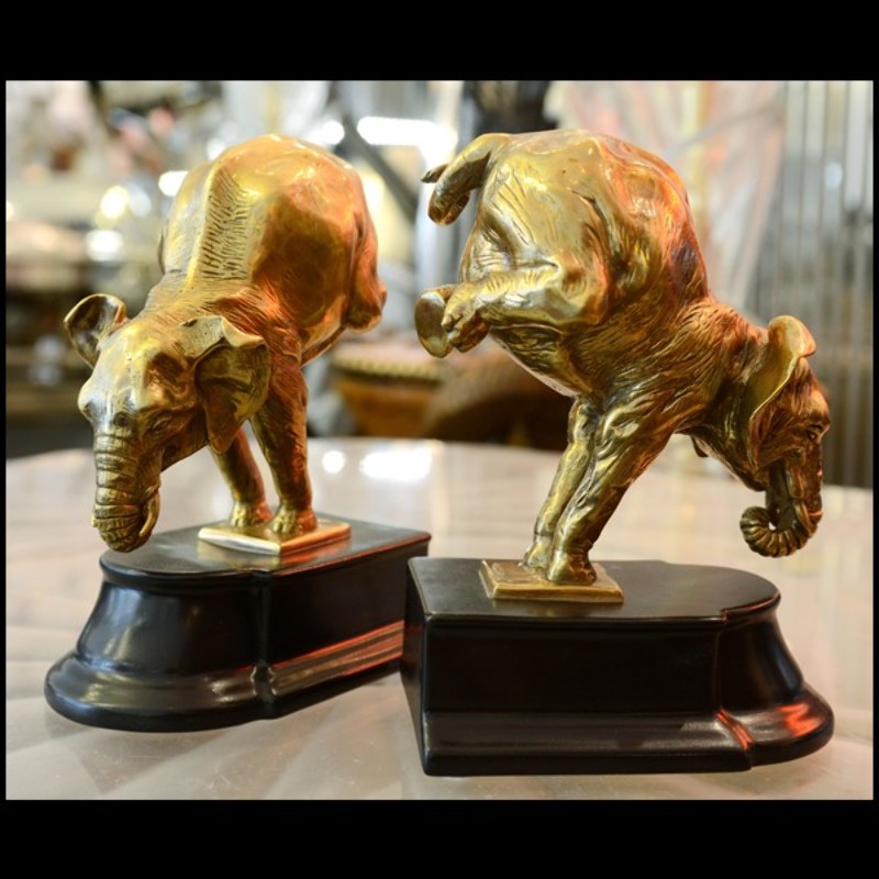 Set de 2 serres-livres en bronze sculptés à la main sur base PC-Acrobat Elephants