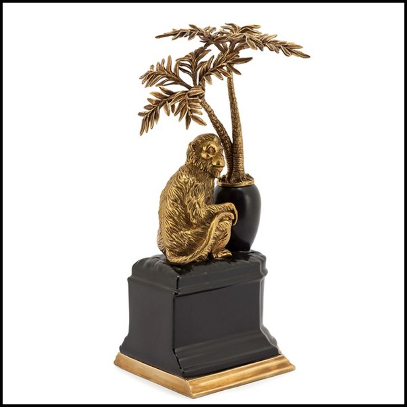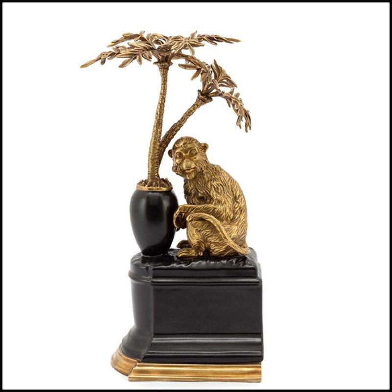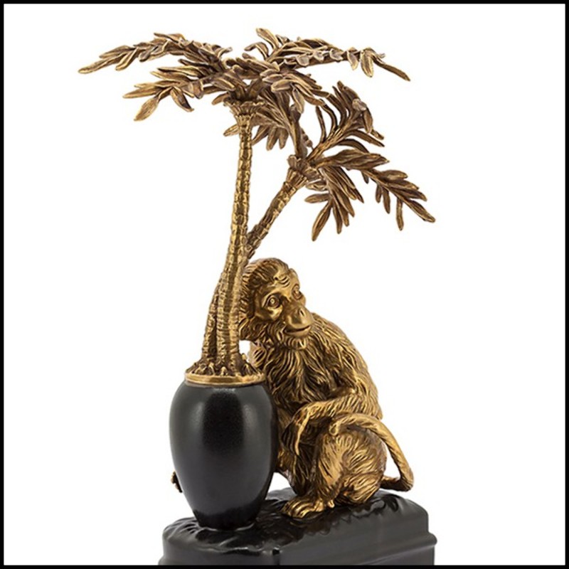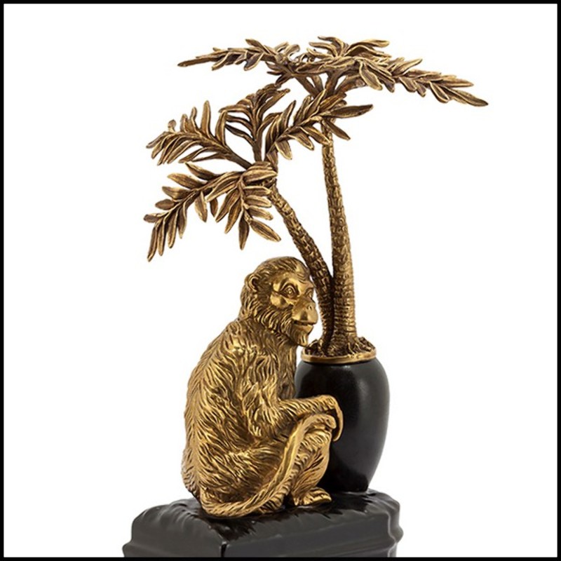 Serre-livres set de 2 en bronze massif avec base en porcelaine peinte à la main 162-Monkeys Palms