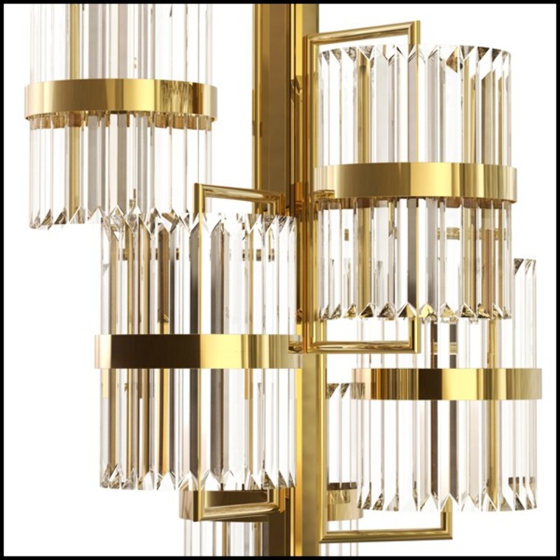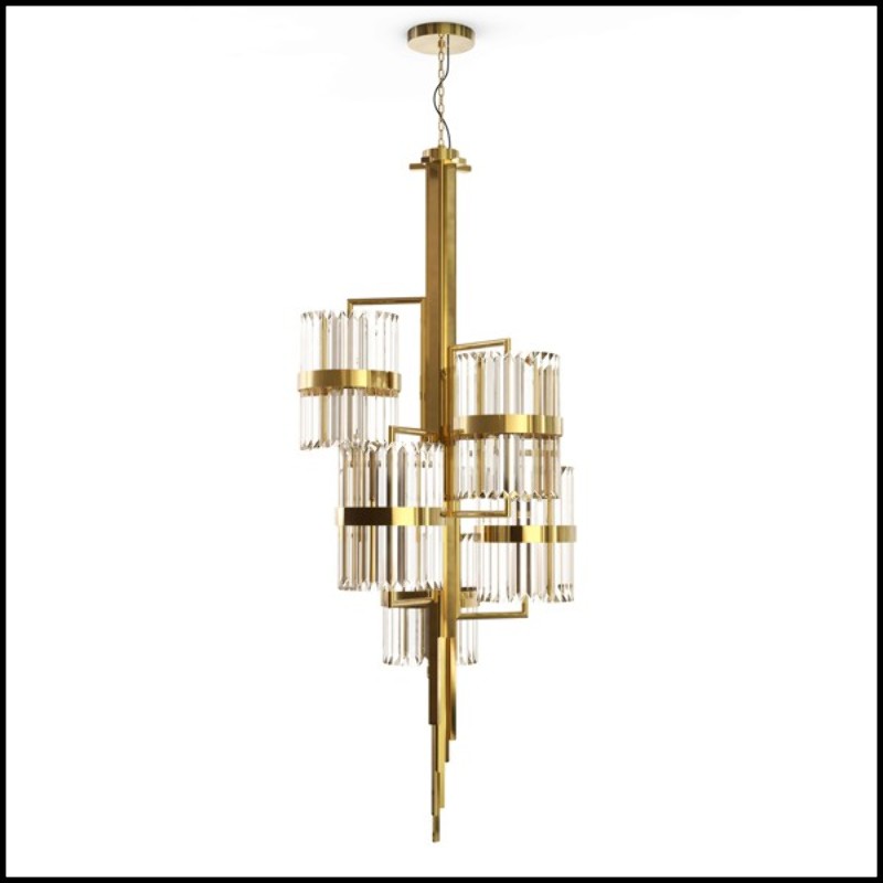 Lustre avec structure plaqué Gold et cylindres en verre cristal 164-Freeone