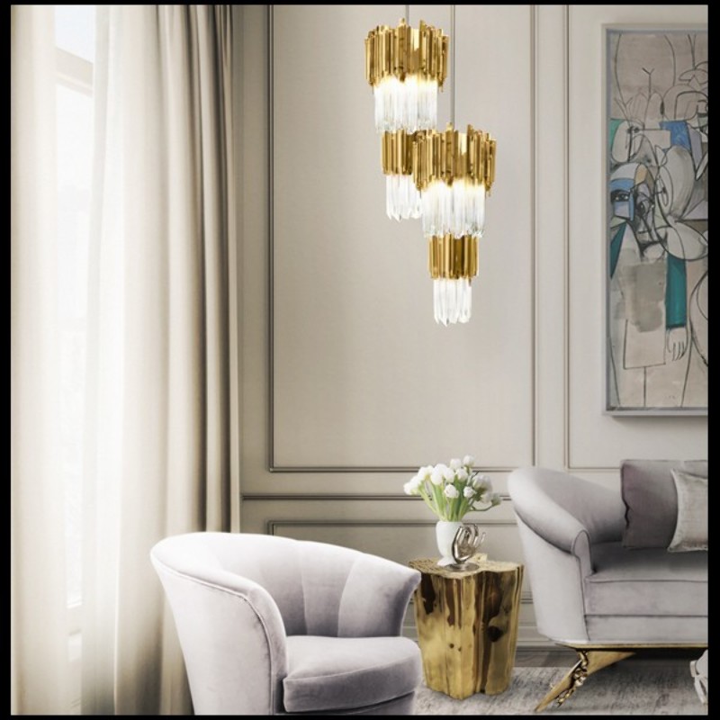 et 2 rangées circulaires de pendants rectangulaires en laiton poli plaqué or.