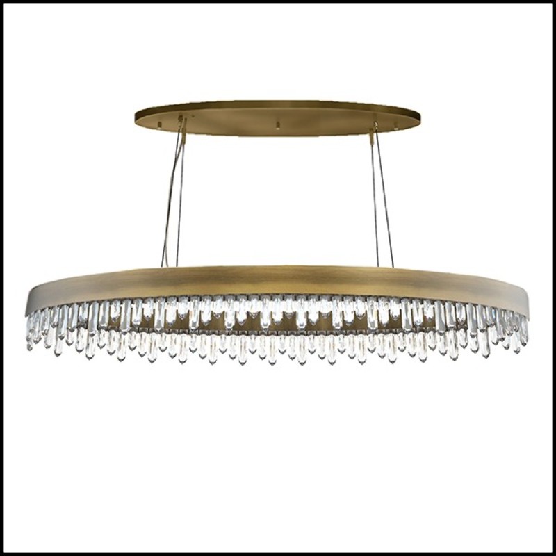 La Suspension Crystal Sticks Oval présente une structure en laiton massif finition antique brossé.