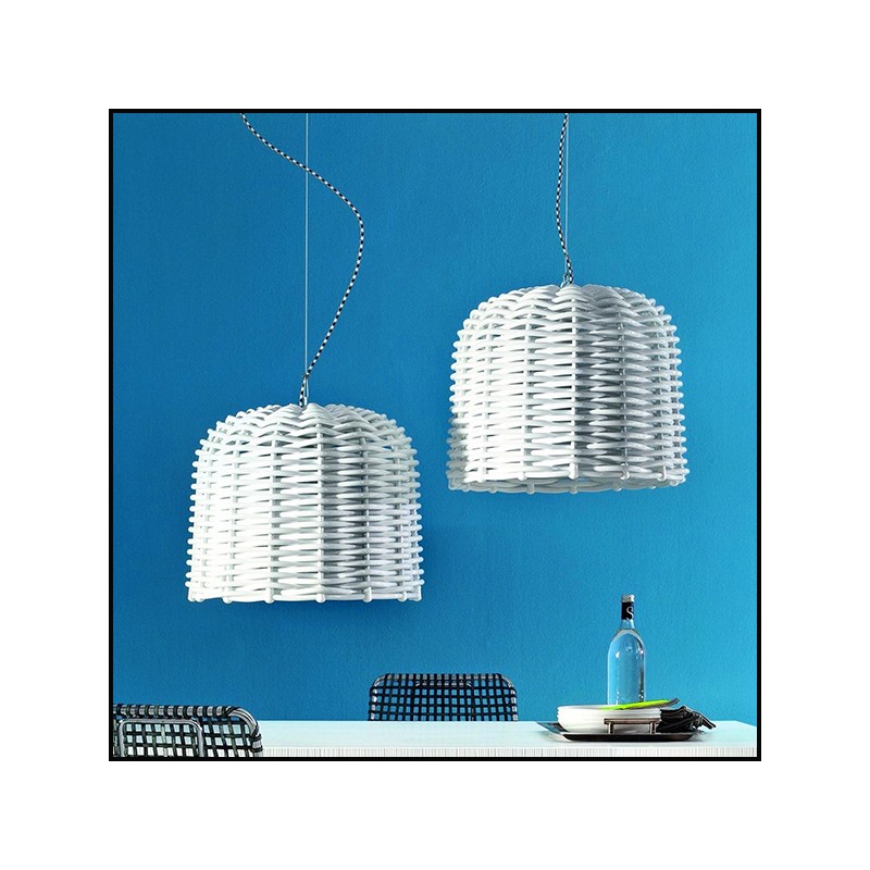 Suspension Ambra High White tout en PVC tressé en finition blanc effet lacqué.