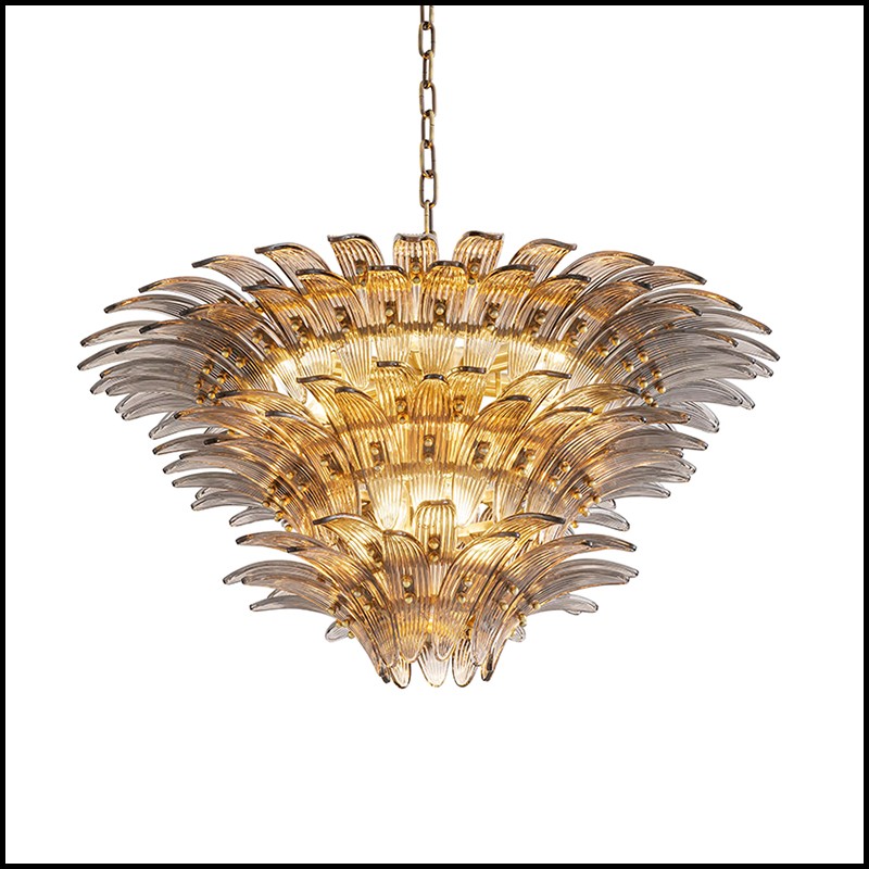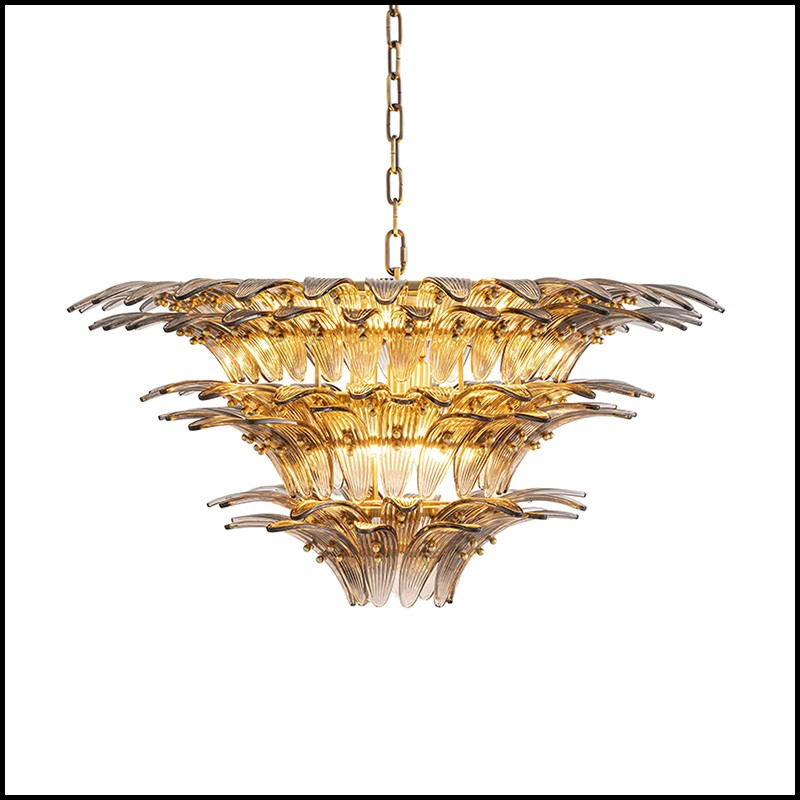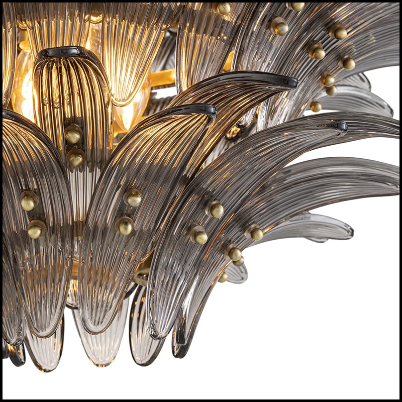 L'abat-jour est composé de pétales en verre fumés, lui donnant un air d'arbre tropical.