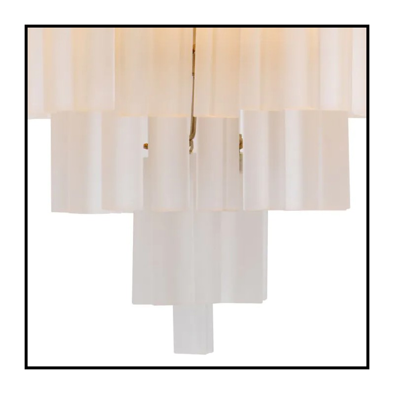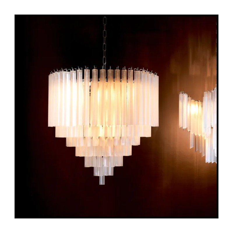 L'armature au fini nickel présente un réseau de verre dépoli à facettes,