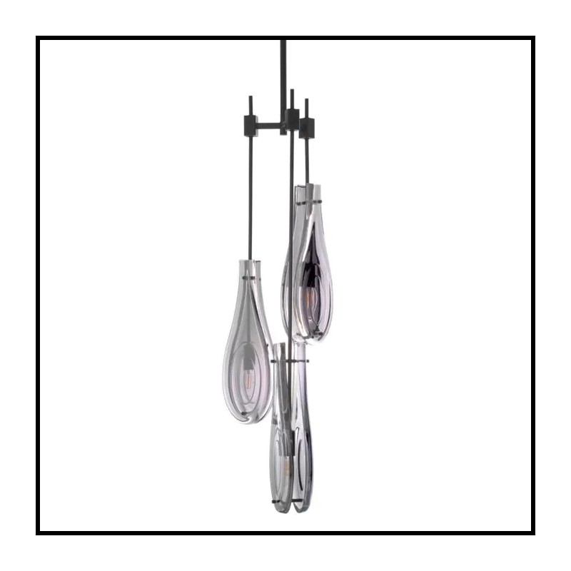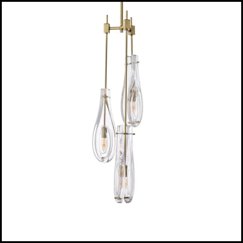 Cette lampe est en laiton brossé avec du verre transparent en forme de gouttelette.