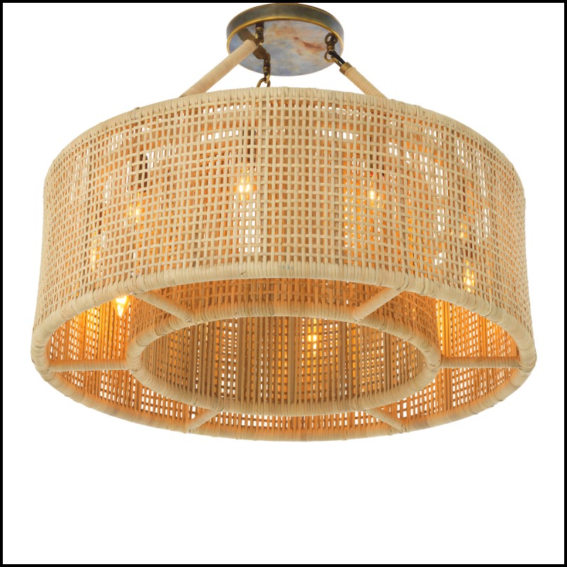 Le lustre Bernardi d’Eichholtz associe la légèreté du rotin naturel à une