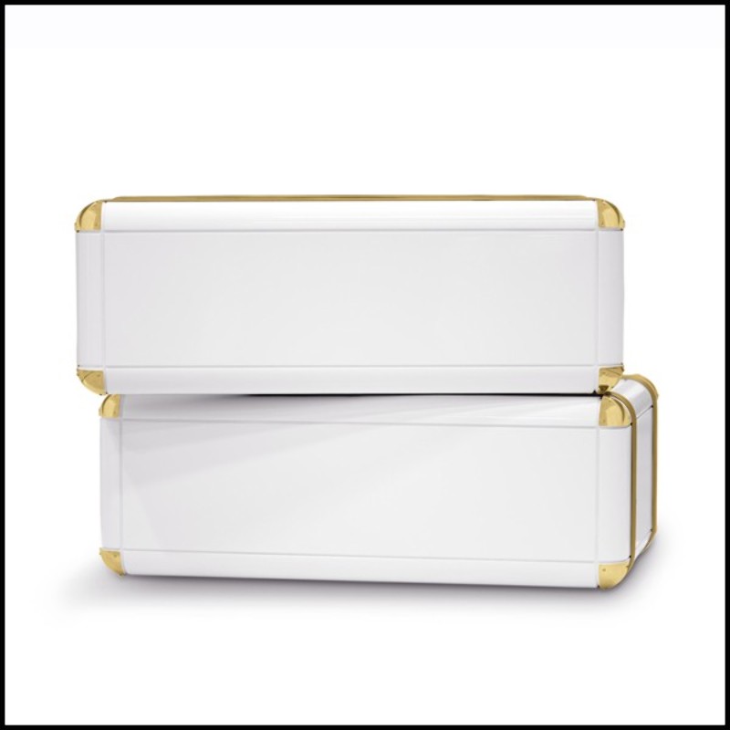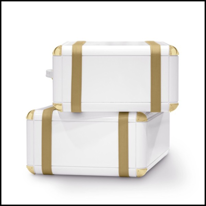 en cuir doré et laiton plaqué or, ce coffre White Flight est un véritable meuble