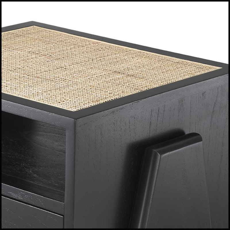 Table de chevet Latour en bois massif finition classic black et dessus en rotin tressé.