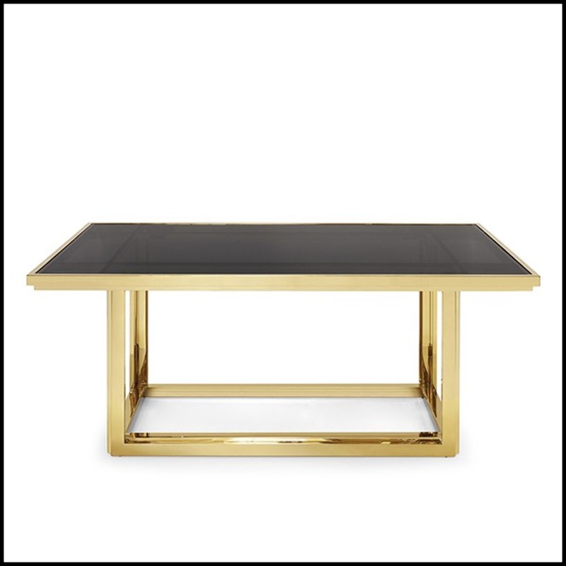 Table à manger Recta rectangulaire avec structure en métal finition gold.