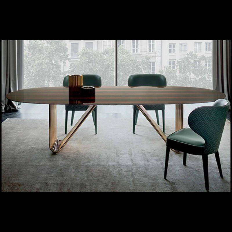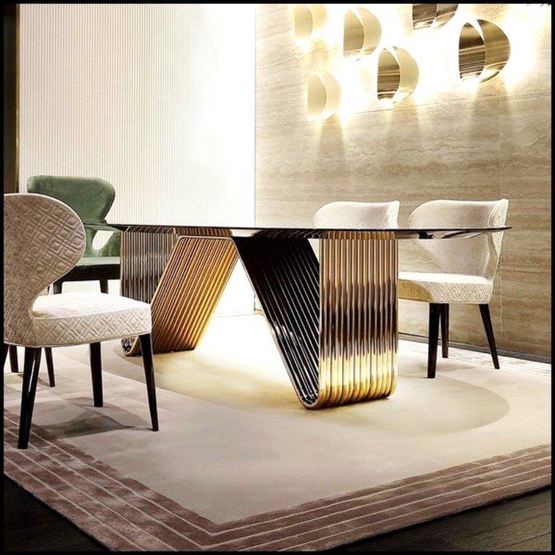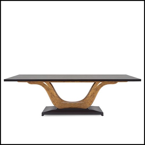 Table à manger Alyson avec plateau en ébène vernis.