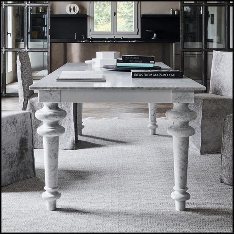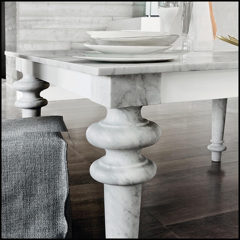 et avec 4 pieds en marbre blanc poli de Carrare.