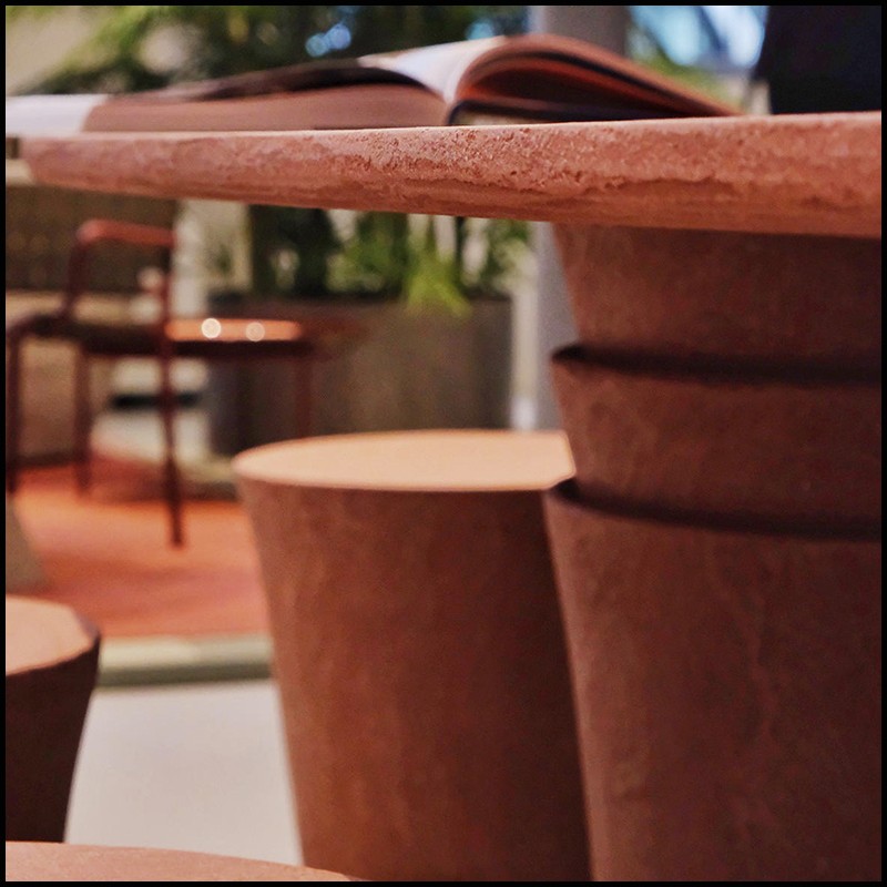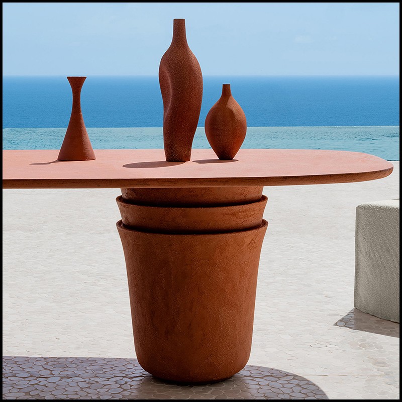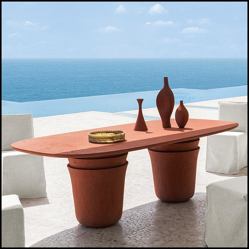 Table Vick Coral Large Outdoor avec plateau en bois en finition corail