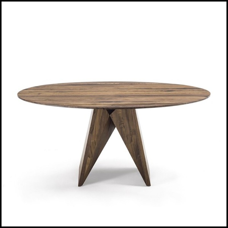 Table à manger Bridge avec base et dessus en noyer massif avec noeuds apparents.