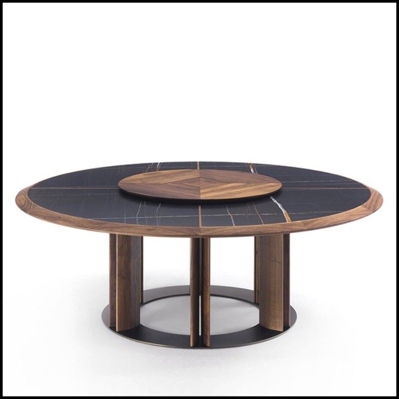 Le plateau est en marbre noir Sahara et le cadre en noyer massif.