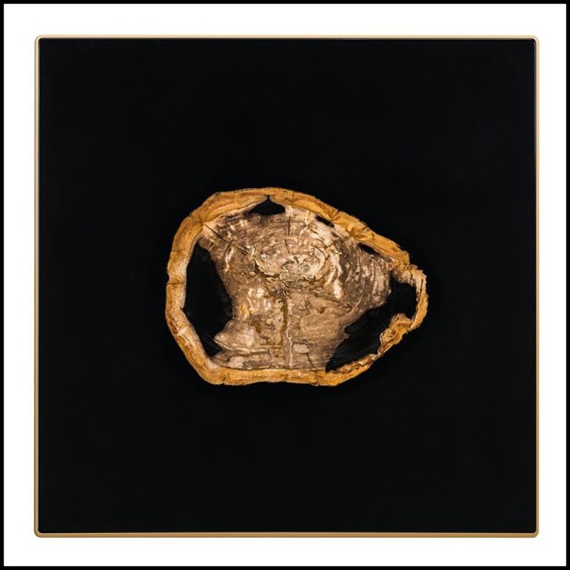 Bois pétrifié incrusté dans le plateau et peinture noir brillante.