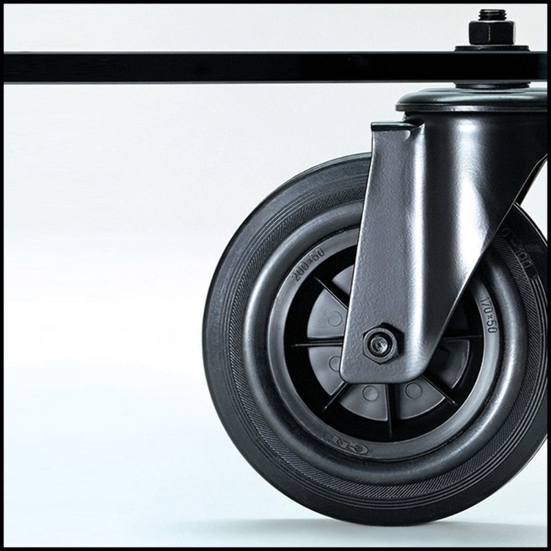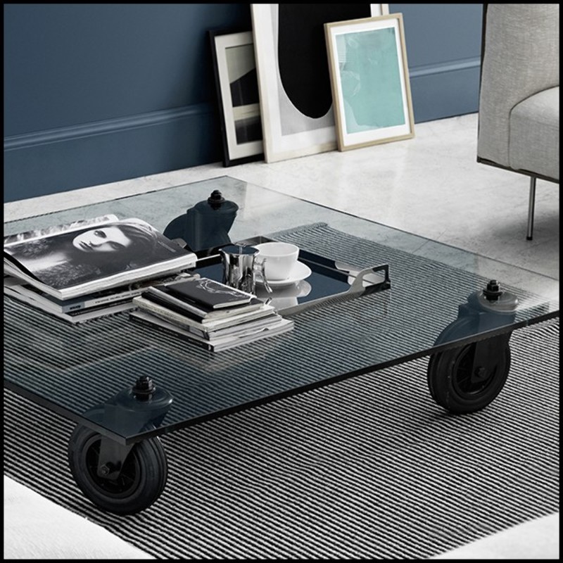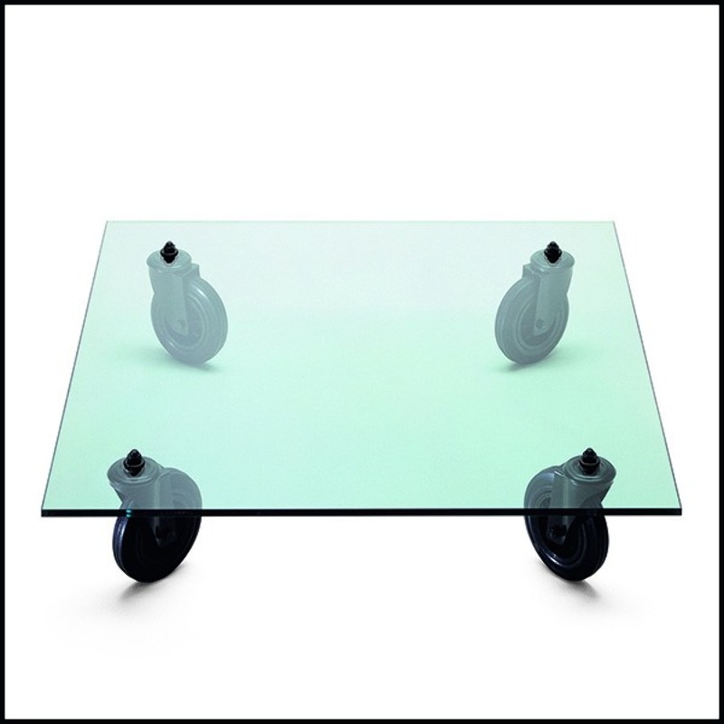 en verre finition noir. Avec fourche des 4 roues en métal noir.