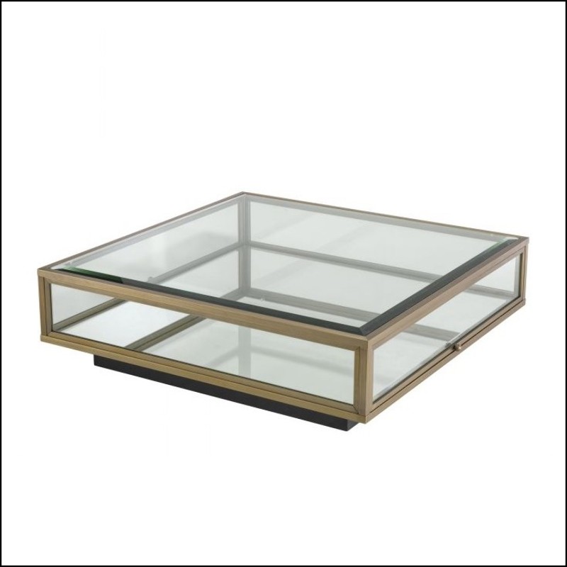 et de métal finition laiton brossé. L'étagère intégrée en verre miroir