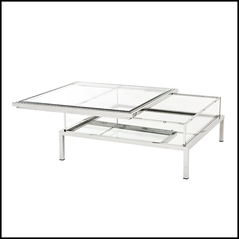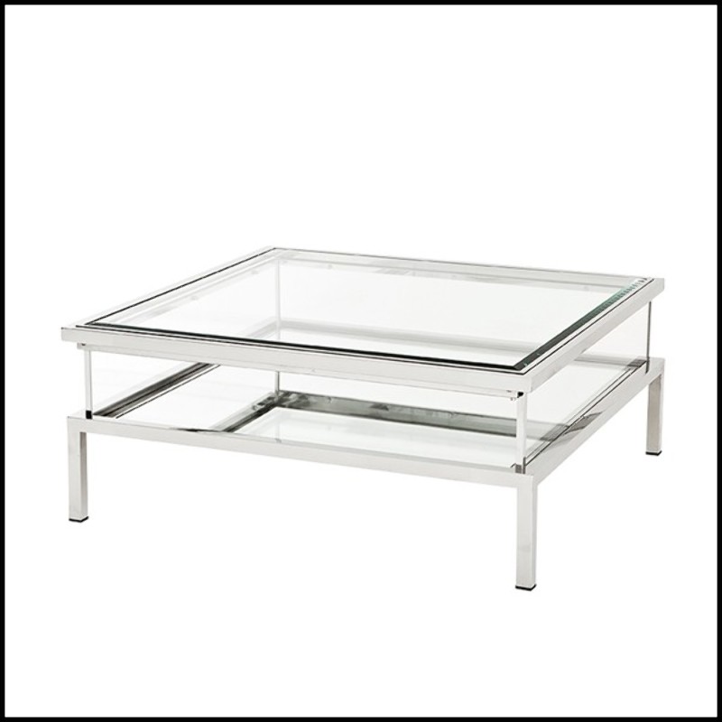 Table basse carrée Harvey avec structure finition acier inoxydable poli