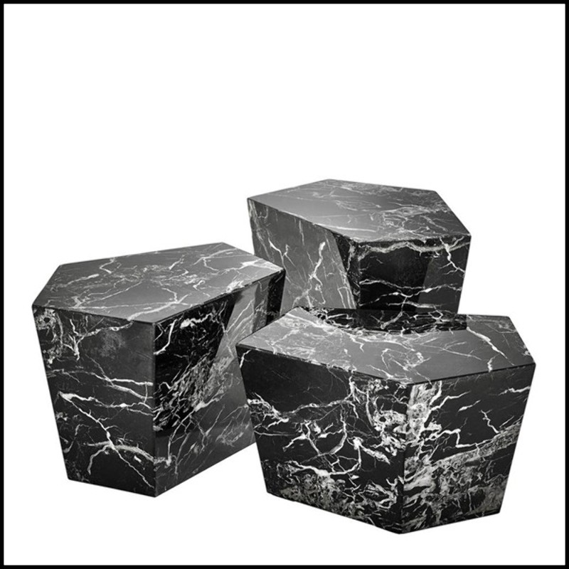 Set de 3 Tables basses Prudential, en marbre blanc.