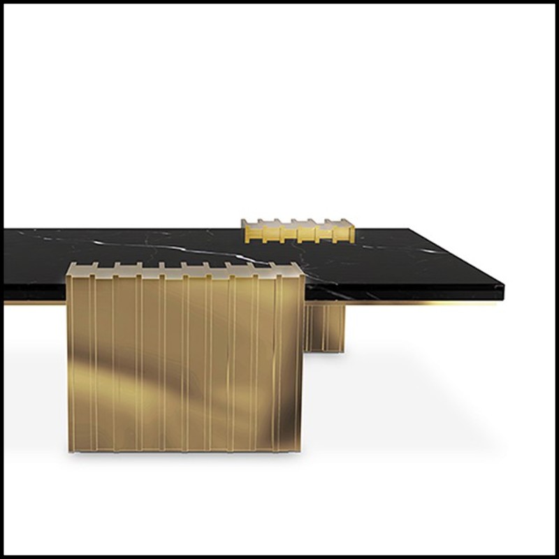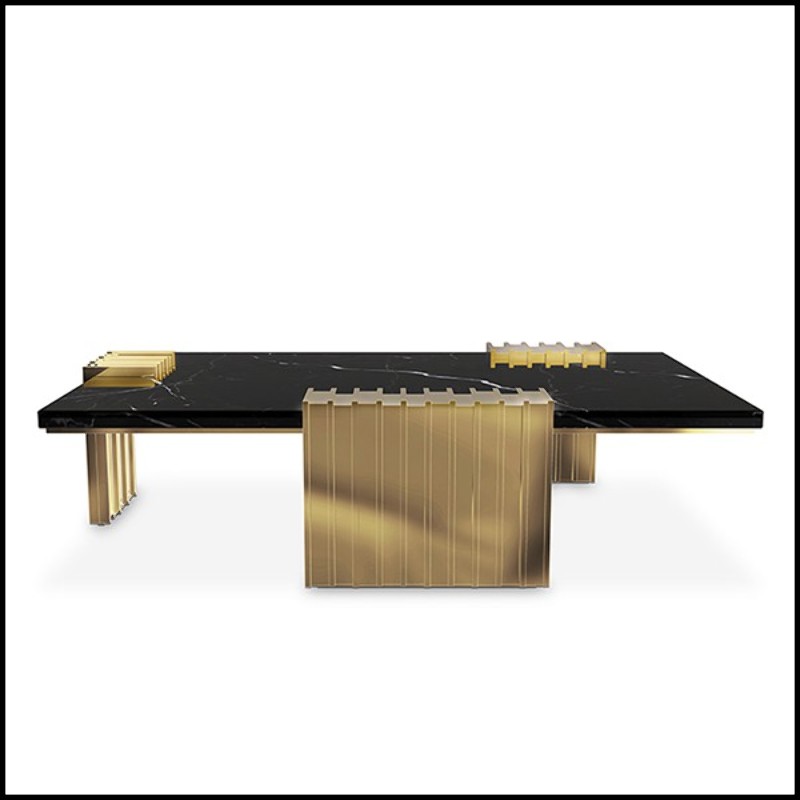 Table basse avec 3 pieds de base en laiton massif poli et plateau du dessus en marbre noir 164-Oldies