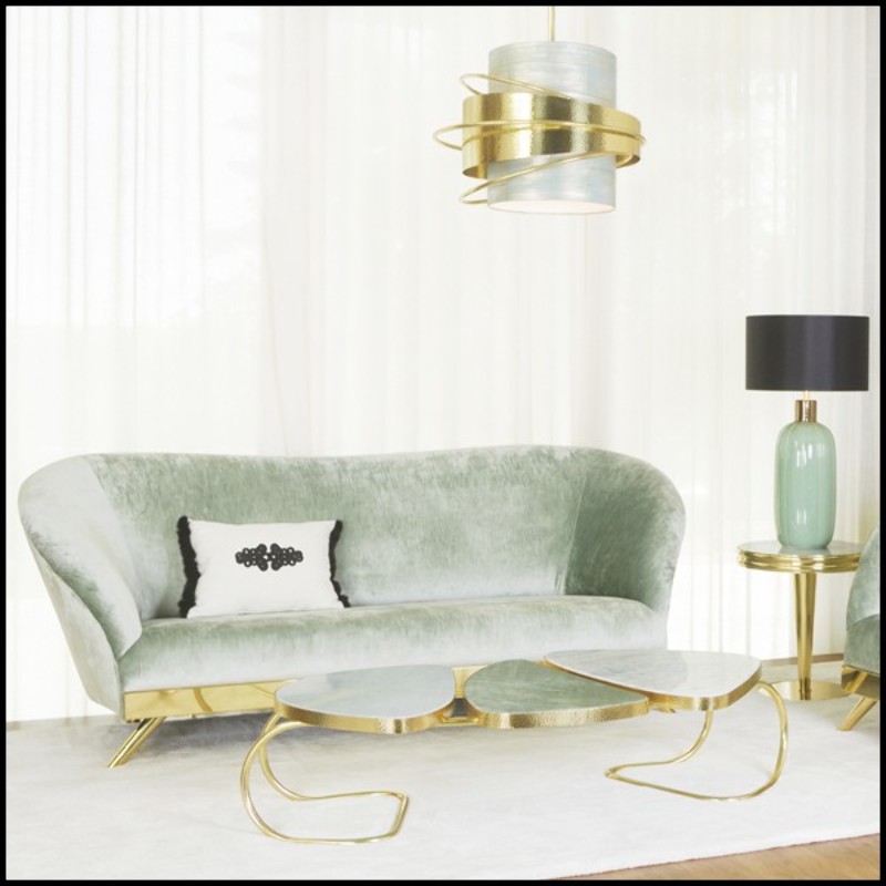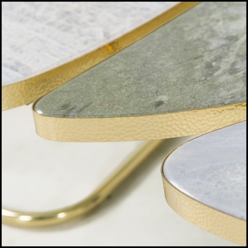 Table basse Scales dotée de 3 plateaux, dont 1 en marbre bleu,